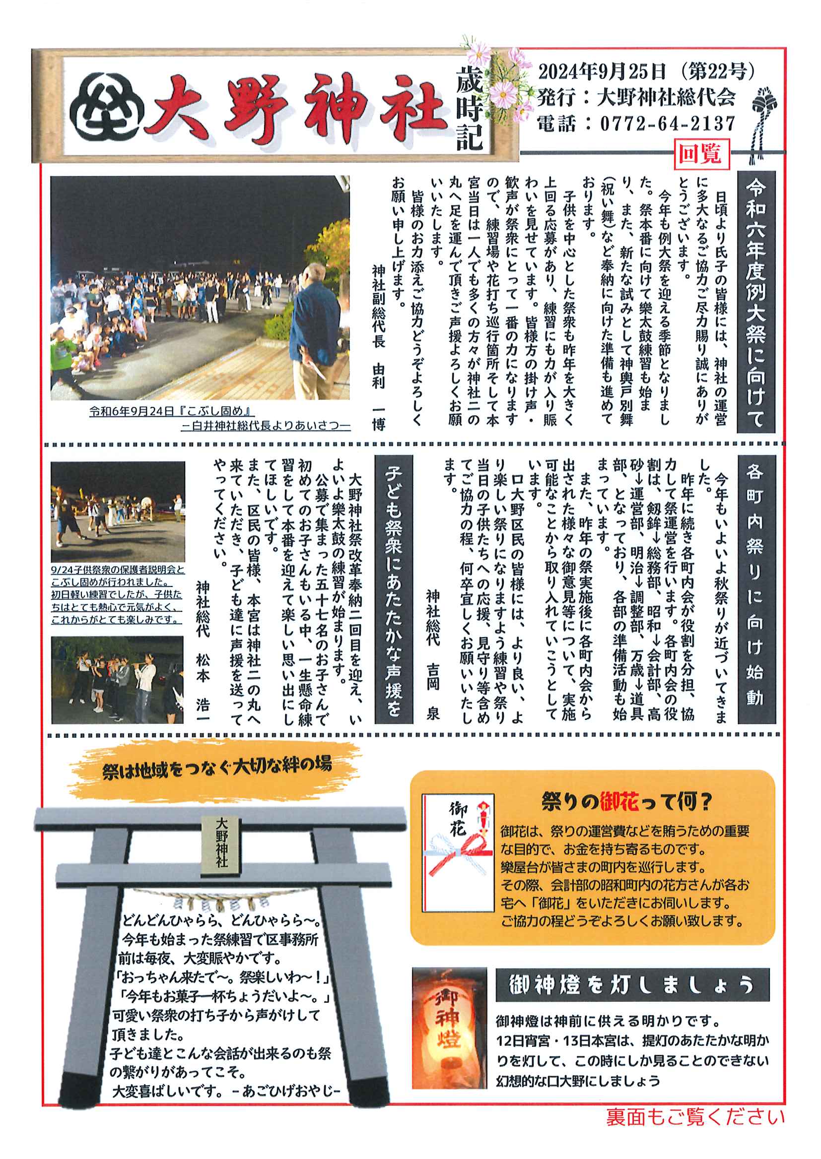 ◇◇ 大野神社歳時記第22号の発行 ◇◇