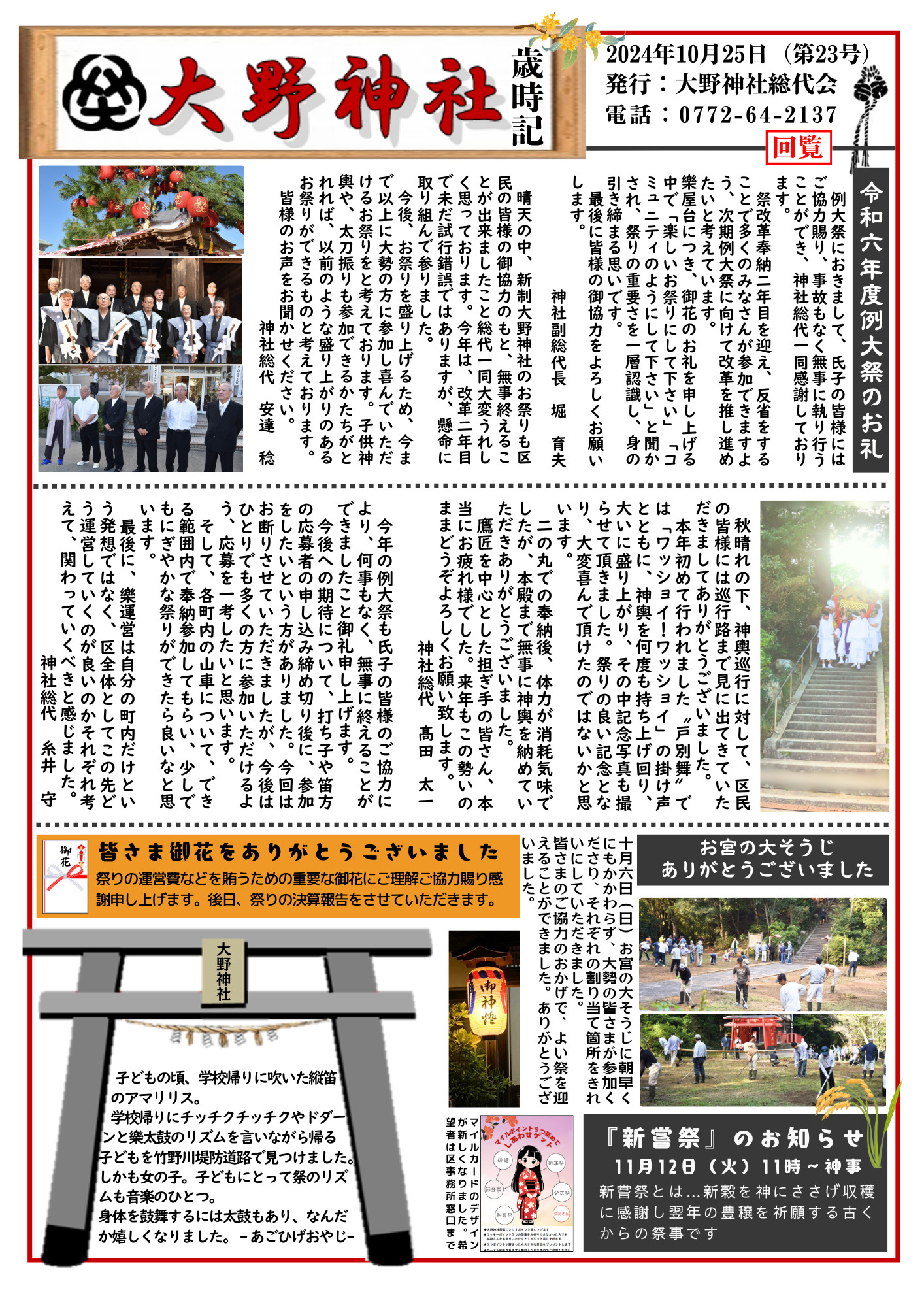 ◇◇ 大野神社歳時記第23号の発行 ◇◇