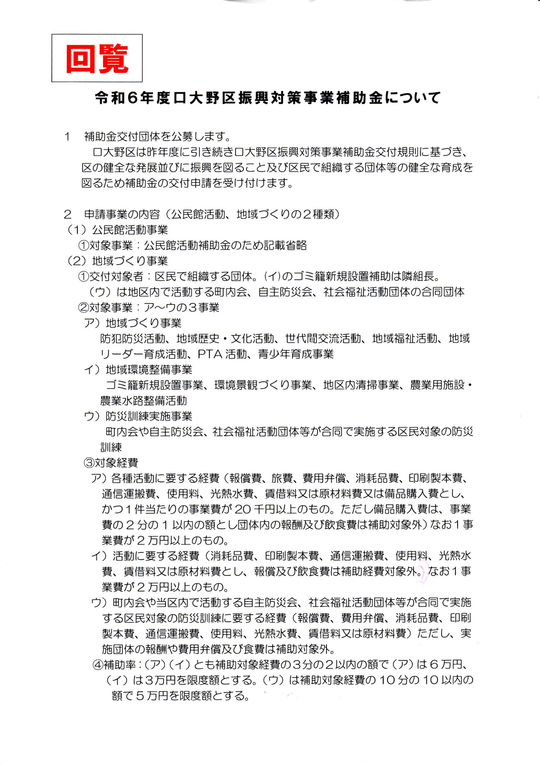 令和6年度分の補助金申請を受け付けています。 公民館や地域団体(自主防災組織、PTA、町内会、福祉団体、農業団体、消防団、隣組、その他各種団体)が行う事業に対して、予算の範囲内で補助金を交付し、住みやすいまちづくりを進めるものです。