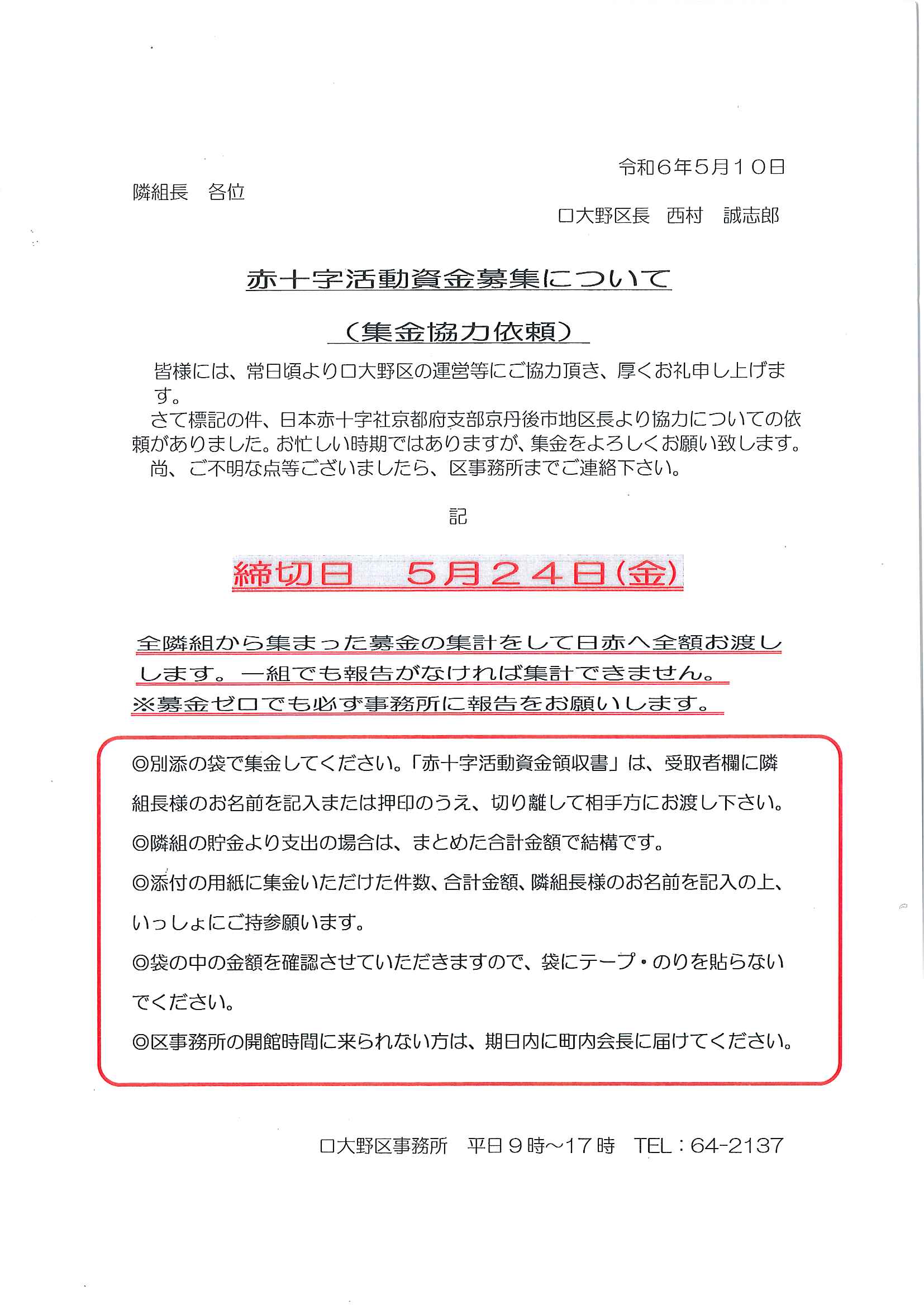 <隣組長様あて>赤十字活動資金募集について