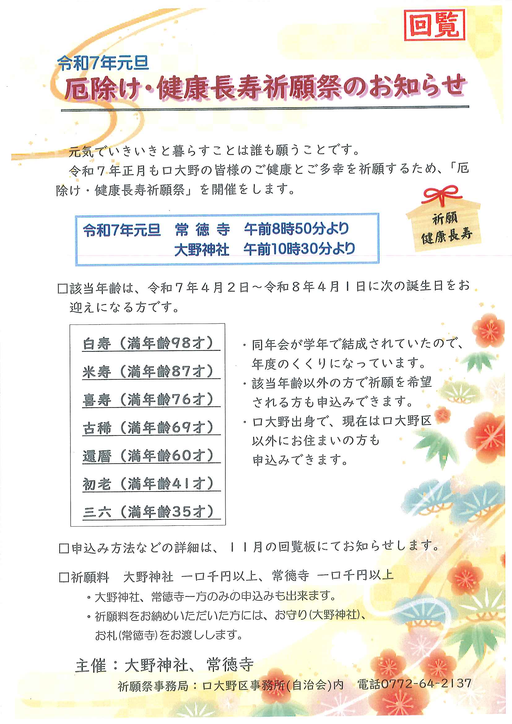 令和7年元旦厄除け・健康長寿祈願祭のお知らせ