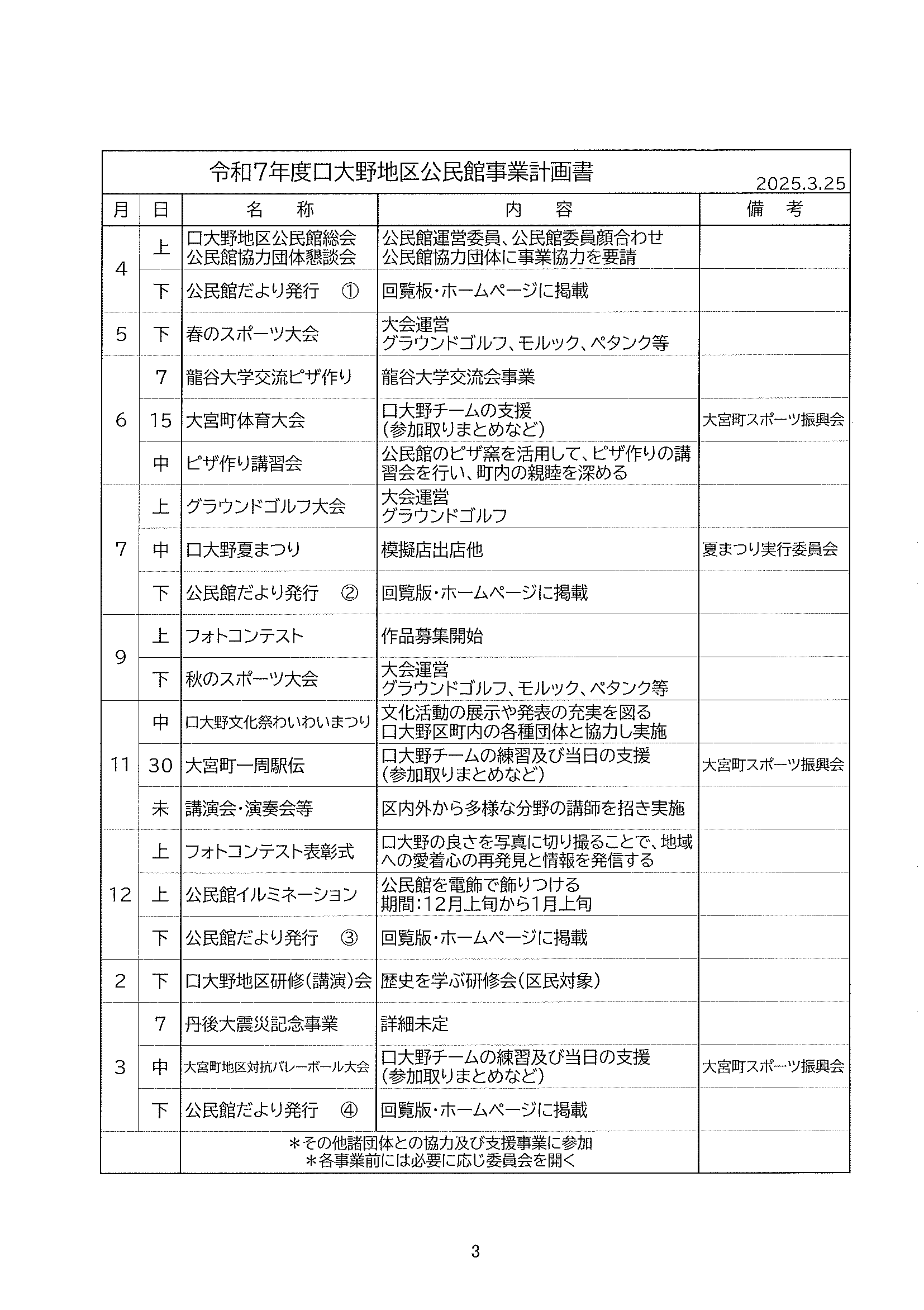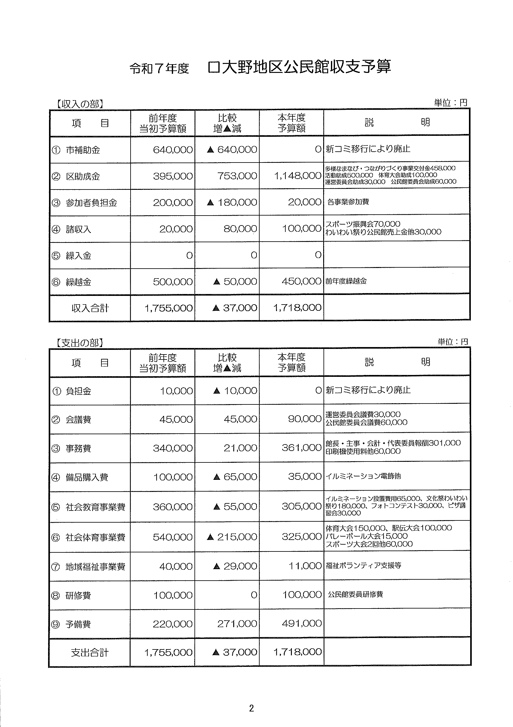 令和7年度口大野地区公民館収支予算書