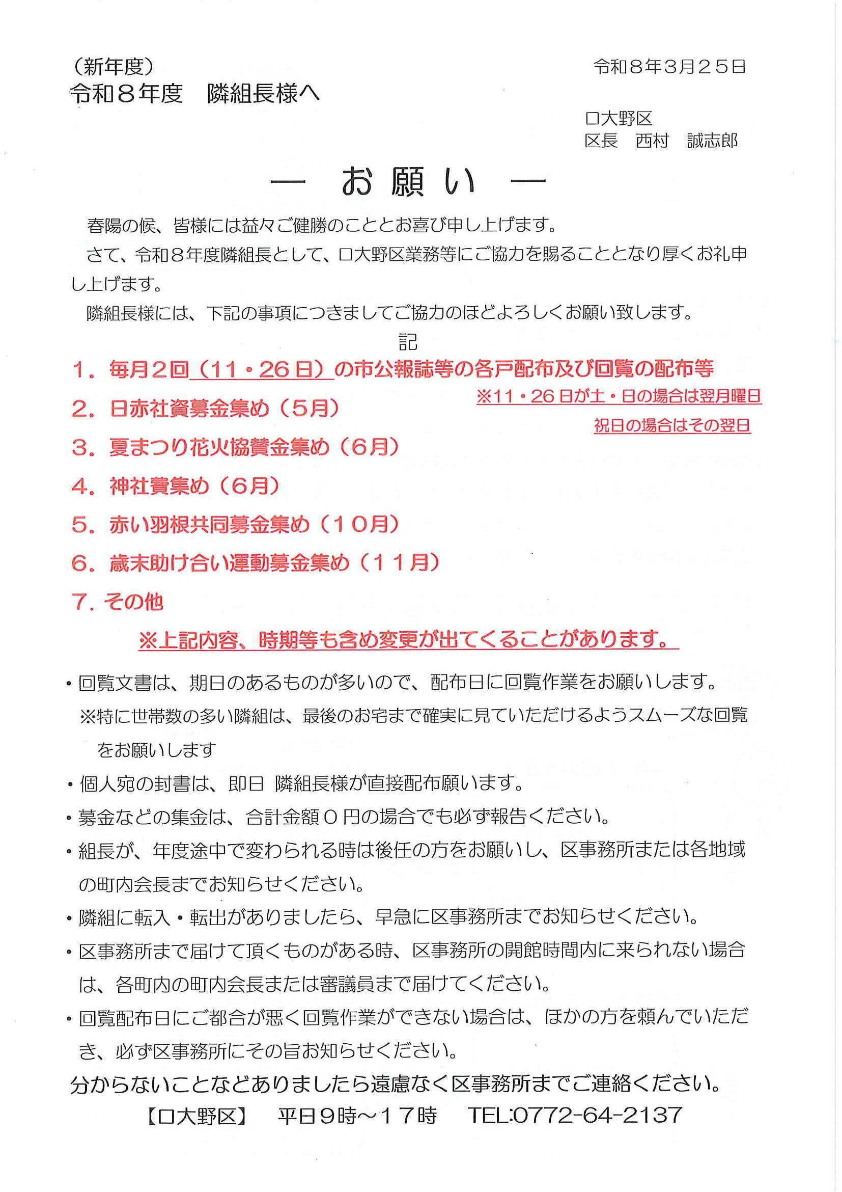 令和8年度隣組長さまへ